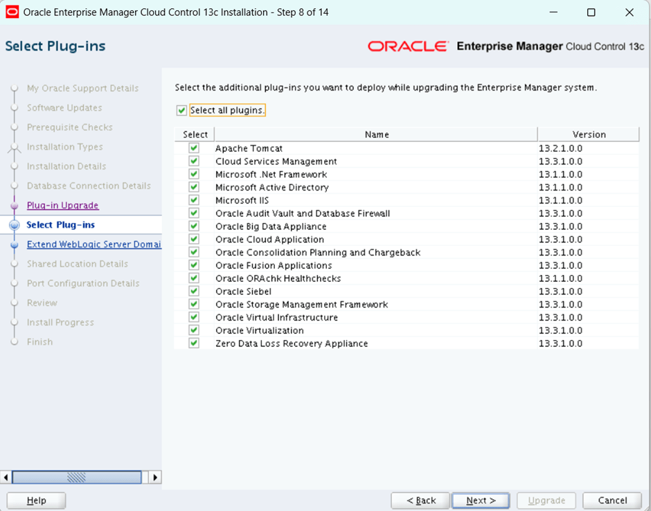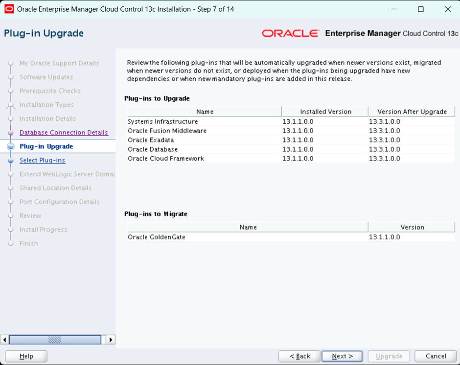 select the option to upgrade the oem. As mentioned existing version is 13.1