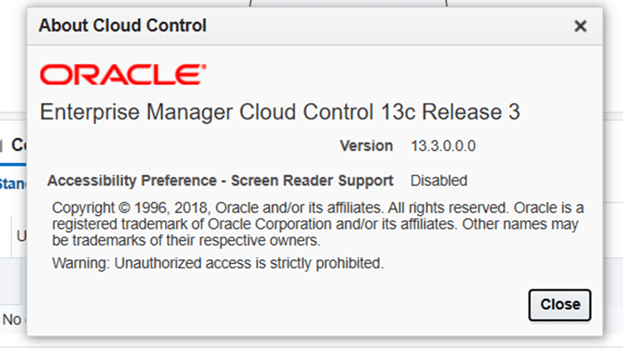 [oracle@oel6-rac01 ~]$ /u01/app/oracle/middleware/bin/emctl status oms -detailsOracle Enterprise Manager Cloud Control 13c Release 1Copyright (c) 1996, 2015 Oracle Corporation. All rights reserved.Enter Enterprise Manager Root (SYSMAN) Password :Console Server Host : oel6-rac01.localdomainHTTP Console Port : 7790HTTPS Console Port : 7803HTTP Upload Port : 4890HTTPS Upload Port : 4904EM Instance Home : /u01/app/oracle/gc_inst1/em/EMGC_OMS1OMS Log Directory Location : /u01/app/oracle/gc_inst1/em/EMGC_OMS1/sysman/logOMS is not configured with SLB or virtual hostnameAgent Upload is locked.OMS Console is locked.Active CA ID: 1Console URL: https://oel6-rac01.localdomain:7803/emUpload URL: https://oel6-rac01.localdomain:4904/empbs/uploadWLS Domain InformationDomain Name : GCDomainAdmin Server Host : oel6-rac01.localdomainAdmin Server HTTPS Port: 7103Admin Server is RUNNINGOracle Management Server InformationManaged Server Instance Name: EMGC_OMS1Oracle Management Server Instance Host: oel6-rac01.localdomainWebTier is UpOracle Management Server is UpJVMD Engine is UpBI Publisher Server InformationBI Publisher Managed Server Name: BIPBI Publisher Server is UpBI Publisher HTTP Managed Server Port : 9701BI Publisher HTTPS Managed Server Port : 9804BI Publisher HTTP OHS Port : 9751BI Publisher HTTPS OHS Port : 9852BI Publisher is locked.BI Publisher Server named 'BIP' running at URL: https://oel6-rac01.localdomain:9852/xmlpserverBI Publisher Server Logs: /u01/app/oracle/gc_inst1/user_projects/domains/GCDomain/servers/BIP/logs/BI Publisher Log : /u01/app/oracle/gc_inst1/user_projects/domains/GCDomain/servers/BIP/logs/bipublisher/bipublisher.log[oracle@oel6-rac01 ~]$[oracle@oel6-rac01 ~]$ /u01/app/oracle/middleware/bin/emctl extended oms jvmd stop -allOracle Enterprise Manager Cloud Control 13c Release 1Copyright (c) 1996, 2015 Oracle Corporation. All rights reserved.No verb found to be registered with emctl extensibles framework[oracle@oel6-rac01 ~]$