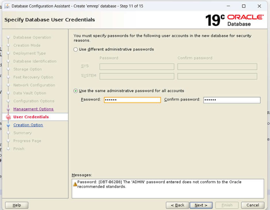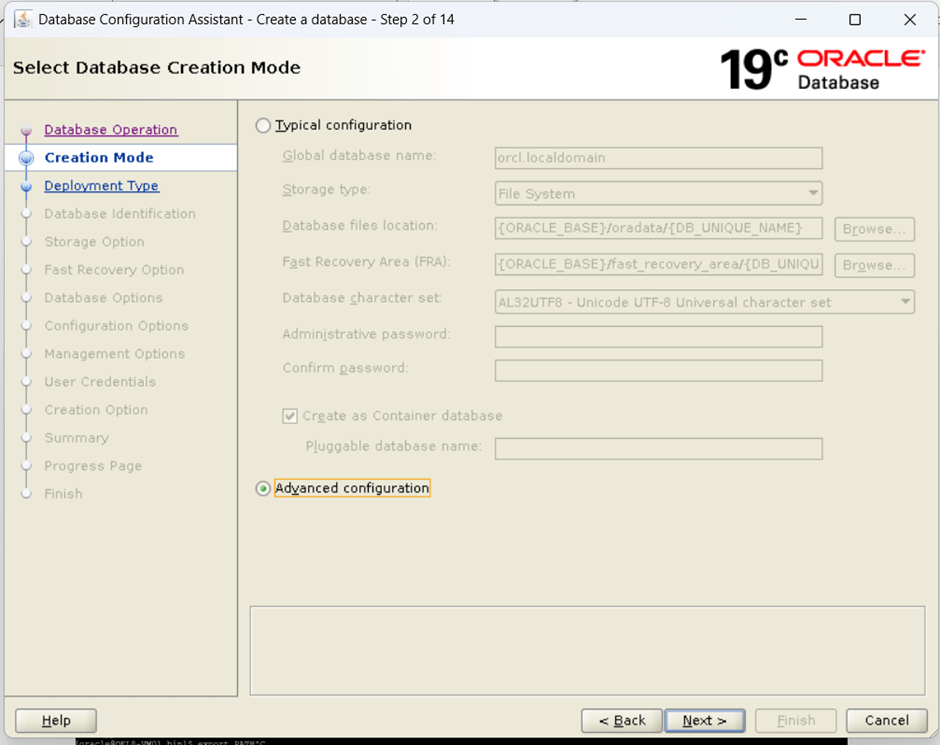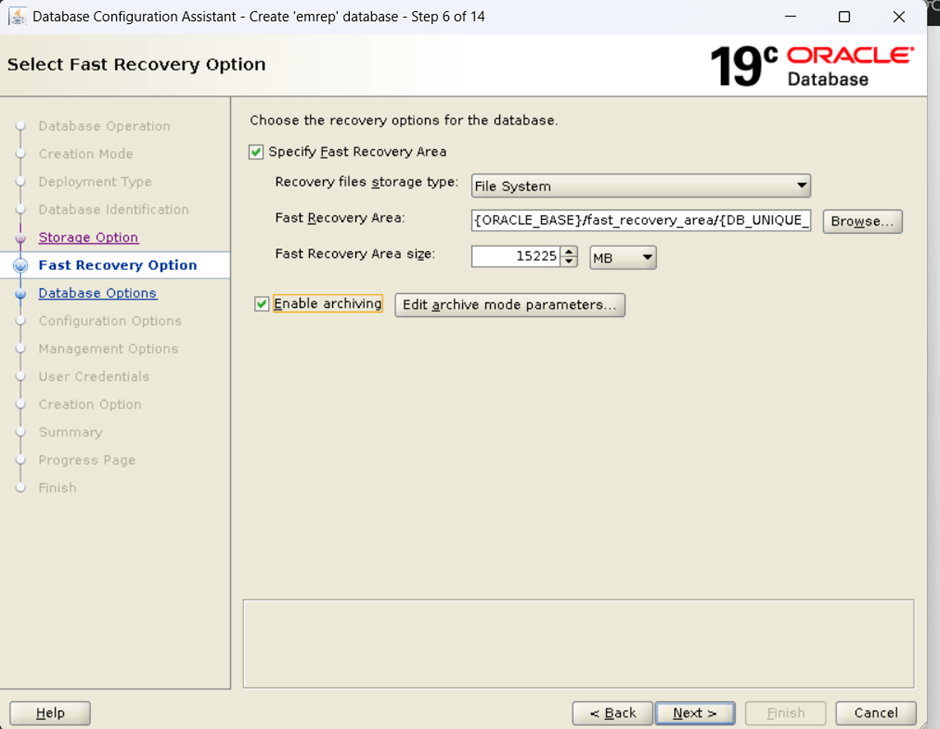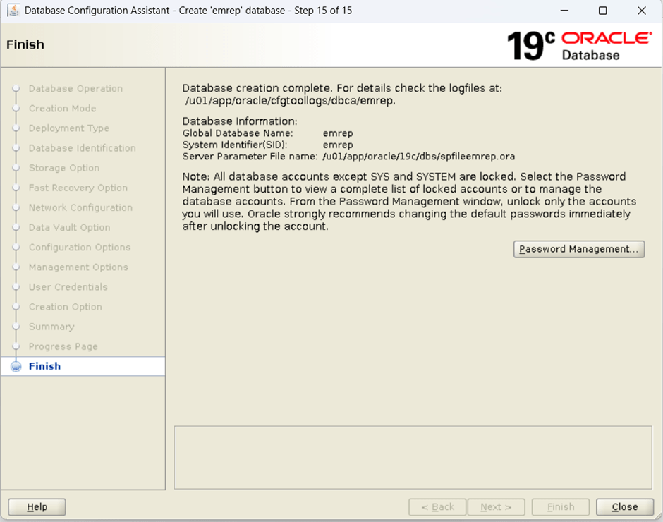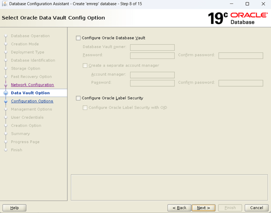[oracle@OEL8-VM01 19c_db_sw]$ cd /u01/app/oracle/19c/assistants/dbca/templates/[oracle@OEL8-VM01 templates]$ pwd/u01/app/oracle/19c/assistants/dbca/templates[oracle@OEL8-VM01 templates]$ cp /shared_dir/12c_OEM/19c_template/19_11_0_0_0_Database_Template_for_EM13_5_0_0_0_Linux_x64.zip .[oracle@OEL8-VM01 templates]$[oracle@OEL8-VM01 templates]$ unzip 19_11_0_0_0_Database_Template_for_EM13_5_0_0_0_Linux_x64.zipArchive: 19_11_0_0_0_Database_Template_for_EM13_5_0_0_0_Linux_x64.zip inflating: set_repo_param_19_11_0_0_0_Database_SQL_for_EM13_5_0_0_0_Large_deployment.sql inflating: set_repo_param_19_11_0_0_0_Database_SQL_for_EM13_5_0_0_0_Medium_deployment.sql inflating: set_repo_param_19_11_0_0_0_Database_SQL_for_EM13_5_0_0_0_Small_deployment.sql inflating: shpool_19_11_0_0_0_Database_SQL_for_EM13_5_0_0_0.sql inflating: 19_11_0_0_0_Database_Template_for_EM13_5_0_0_0_Large_deployment.dbc inflating: 19_11_0_0_0_Database_Template_for_EM13_5_0_0_0_Medium_deployment.dbc inflating: 19_11_0_0_0_Database_Template_for_EM13_5_0_0_0_Small_deployment.dbc inflating: 19_11_0_0_0_Database_Template_for_EM13_5_0_0_0.dfb inflating: 19_11_0_0_0_Database_Template_for_EM13_5_0_0_0.ctl[oracle@OEL8-VM01 templates]$