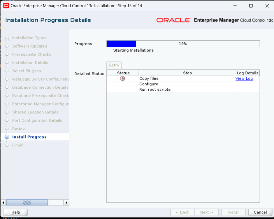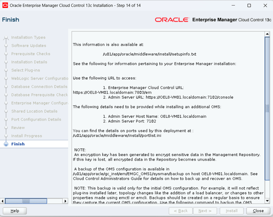 [root@OEL8-VM01 oracle]# /u01/app/oracle/middleware/allroot.shStarting to execute allroot.sh .........Starting to execute /u01/app/oracle/middleware/root.sh ......Check /u01/app/oracle/middleware/install/root_OEL8-VM01.localdomain_2026-02-23_14-48-09.log for the output of root scriptFinished product-specific root actions./etc existFinished execution of /u01/app/oracle/middleware/root.sh ......Starting to execute /u01/app/oracle/agent/agent_13.5.0.0.0/root.sh ......Finished product-specific root actions./etc existFinished execution of /u01/app/oracle/agent/agent_13.5.0.0.0/root.sh ......[root@OEL8-VM01 oracle]#